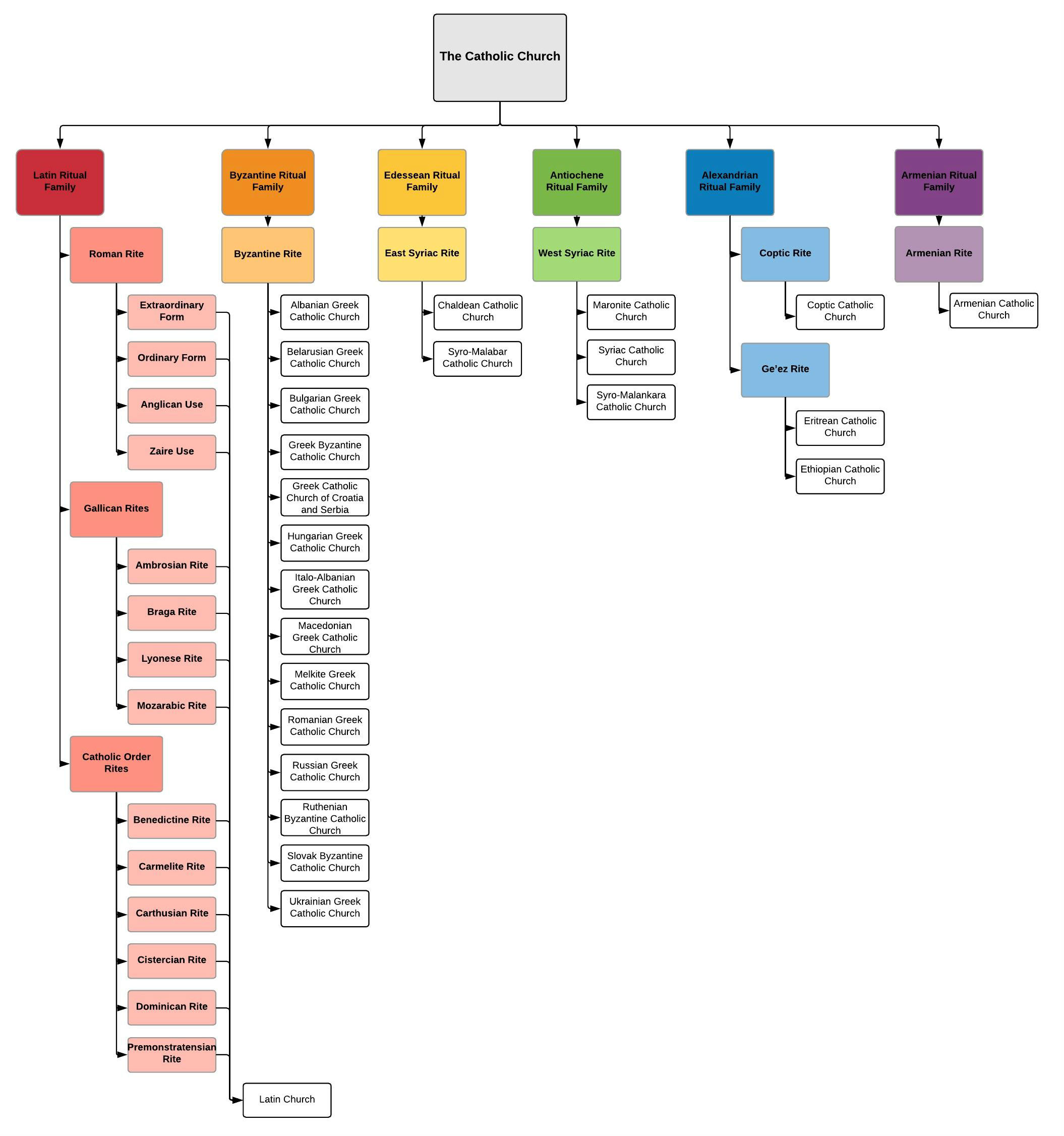 - I quoted: Catechism of the Catholic Church §1203: "The liturgical traditions or rites presently in use in the Church are the Latin (principally the Roman rite, but also the rites of certain local churches, such as the Ambrosian rite, or those of certain religious orders) and the Byzantine, Alexandrian or Coptic, Syriac, Armenian, Maronite and Chaldean rites."